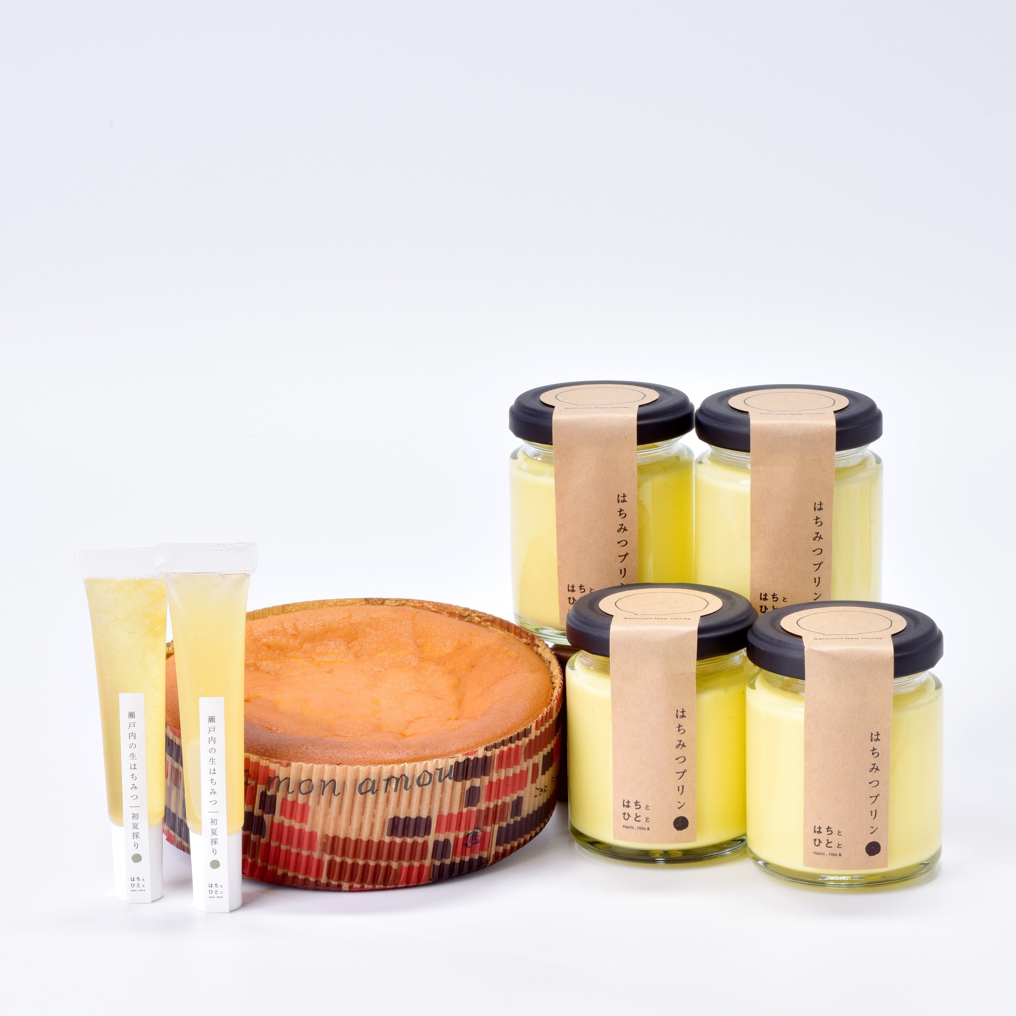 ・内容量:チーズケーキ300g(4号)、プリン90g×4、はちみつ15g×2
